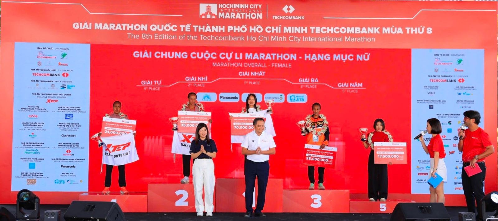 Ở đường đua Marathon nữ, vận động viên Phạm Thị Hồng Lệ đã vượt qua hàng loạt các đối thủ mạnh để về nhất với thời gian 2:48:10. Ba vị trí tiếp theo lần lượt thuộc về các vận động viên Ethiopia: Mohamed Yenework Husen, Birehan Marta Tinsae và Zega Mestu Sirabzu. Vị trí thứ năm thuộc về vận động viên Doãn Oanh. Màn trình diễn của hai vận động viên Việt Nam giữa dàn vận động viên quốc tế đã thể hiện khả năng cạnh tranh, bứt phá của vận động viên nước nhà, tạo nên khoảnh khắc đầy tự hào trong lòng khán giả.